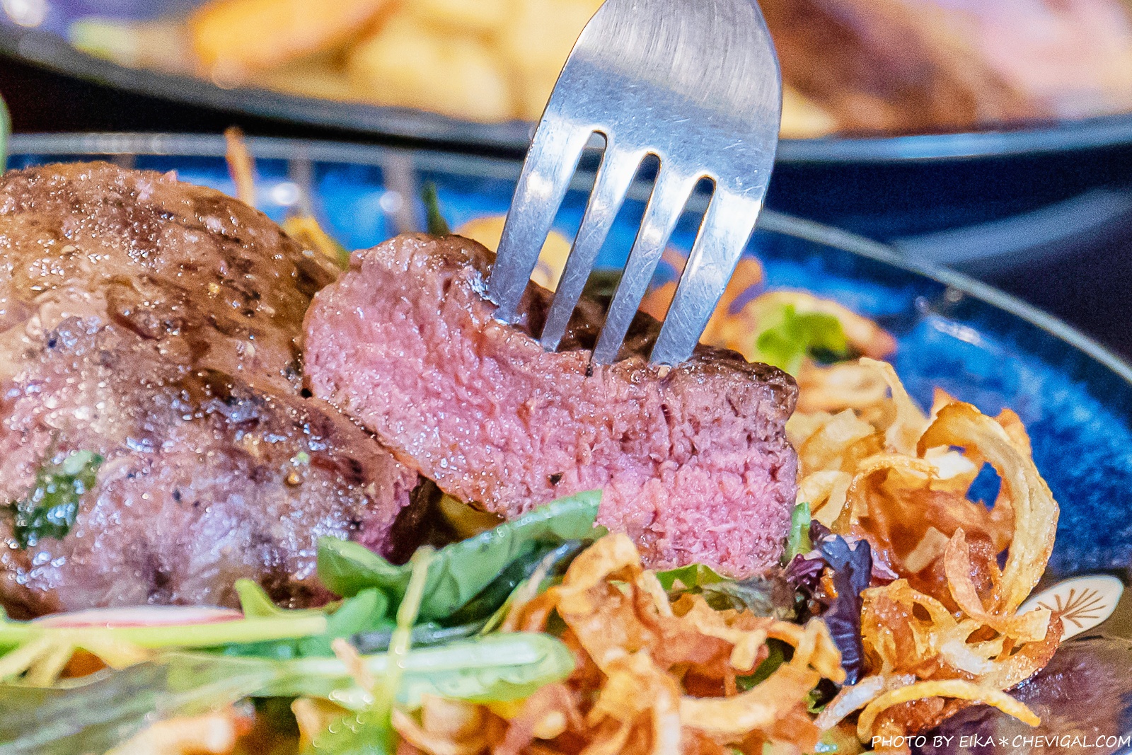 五盎司的菲力牛排肉質厚度相當有誠意,切面呈現粉色誘人的色澤,略帶嚼勁的口感卻又不失軟嫩多汁,雖然本身的油脂不若其他部位來得豐厚,但是更能突顯出牛肉最原始的鮮甜。