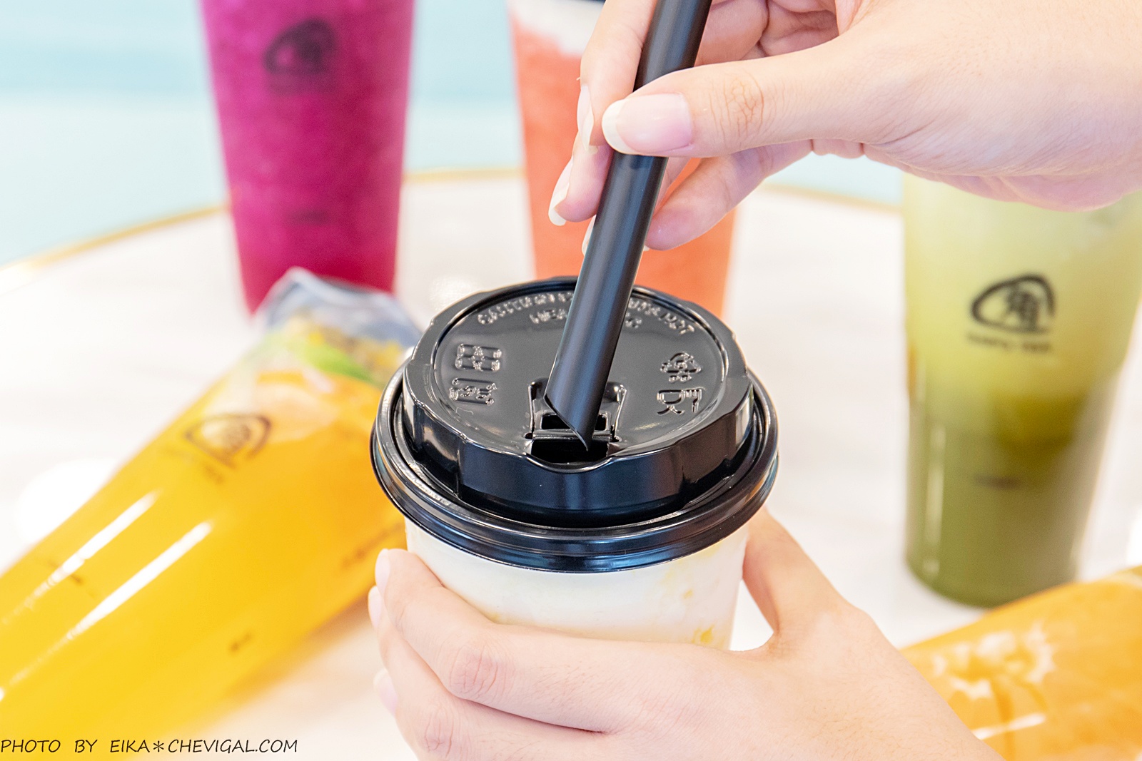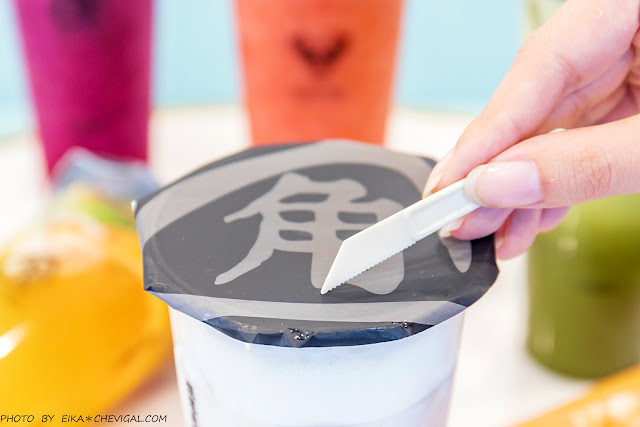 也許你們會很好奇到底奶蓋系列的飲品到底應該要怎麼喝?其實角鋪有杯蓋有兩種形式,一種是單純的封膜,一種是再搭配方便直接就口的杯蓋,奶蓋系列的飲品就是屬於後者。