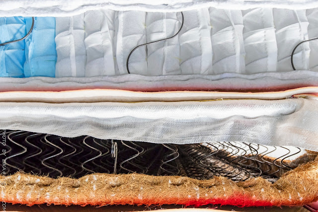 為什麼有些床墊會這麼便宜呢?除了有多種原因,覆蓋在外層保護獨立筒的纖維棉也是我們一般消費者可以判斷的指標之一。像是右邊的纖維棉就是由碎布料重組而成,我們根本就不知道這些原料從何而來,與左邊優質的長纖維相比,真的很可怕啊!