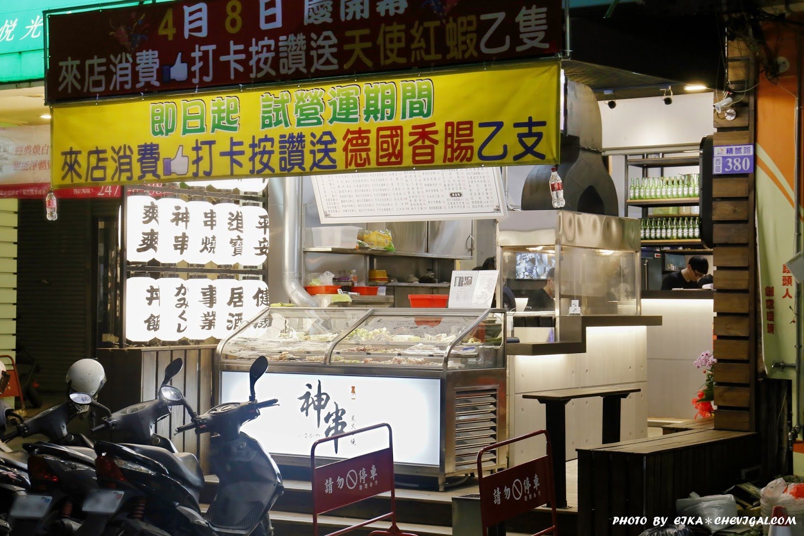 充滿日式風情的神串,店外高掛多盞燈籠,在黑夜裡顯特別明顯;不過附近的停車場近期正在施工,若是要來嚐鮮的朋友們,會比較建議你們騎車前往,才不會走得太遠~
