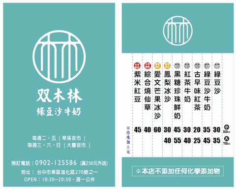 聽說双木林實體店面的飲品常常在打烊前就銷售一空,如果在進化門市沒買到也沒關係,目前除了週一與週四之外,在旱溪夜市或大慶夜市都能買得到!喜歡綠豆沙的朋友們不妨可以來嚐鮮看看哦!分享給你們:)