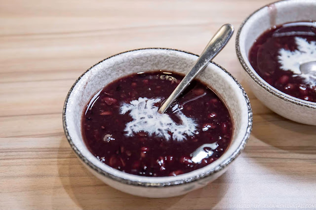 最後的餐後甜點是紫米紅豆湯,甜度適中,加入些許的鮮奶油後,香氣更加飽滿迷人!