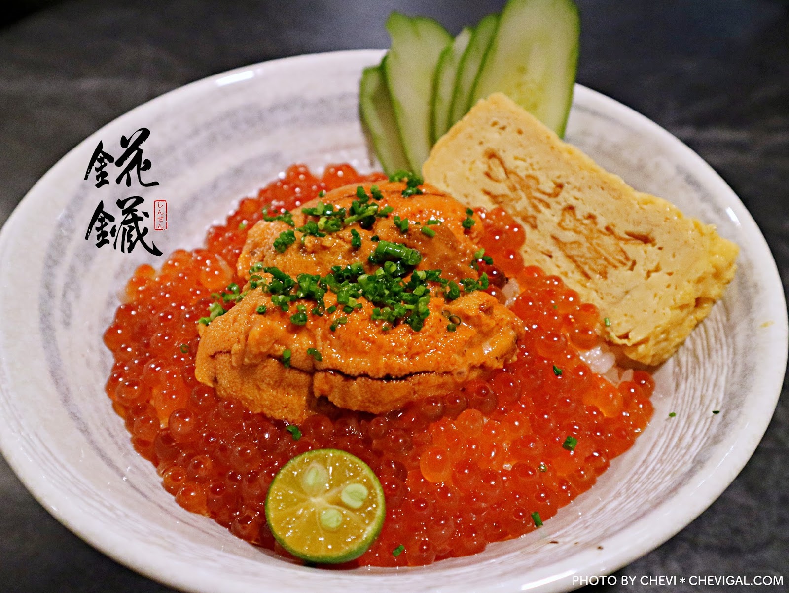 錵鑶散壽司(單點$360/套餐$420):滿滿的配料堆成一座小山,完全看不到醋飯,上頭有著鮭魚子、玉子燒、小黃瓜及生魚切丁,整碗吃來是很鮮甜的口感,相較前面的海膽鮭魚子丼來得清爽不少。