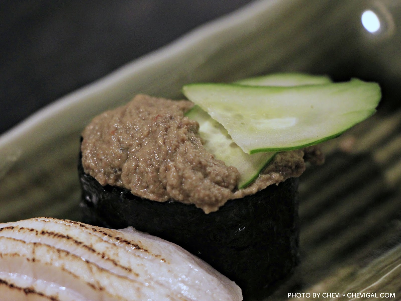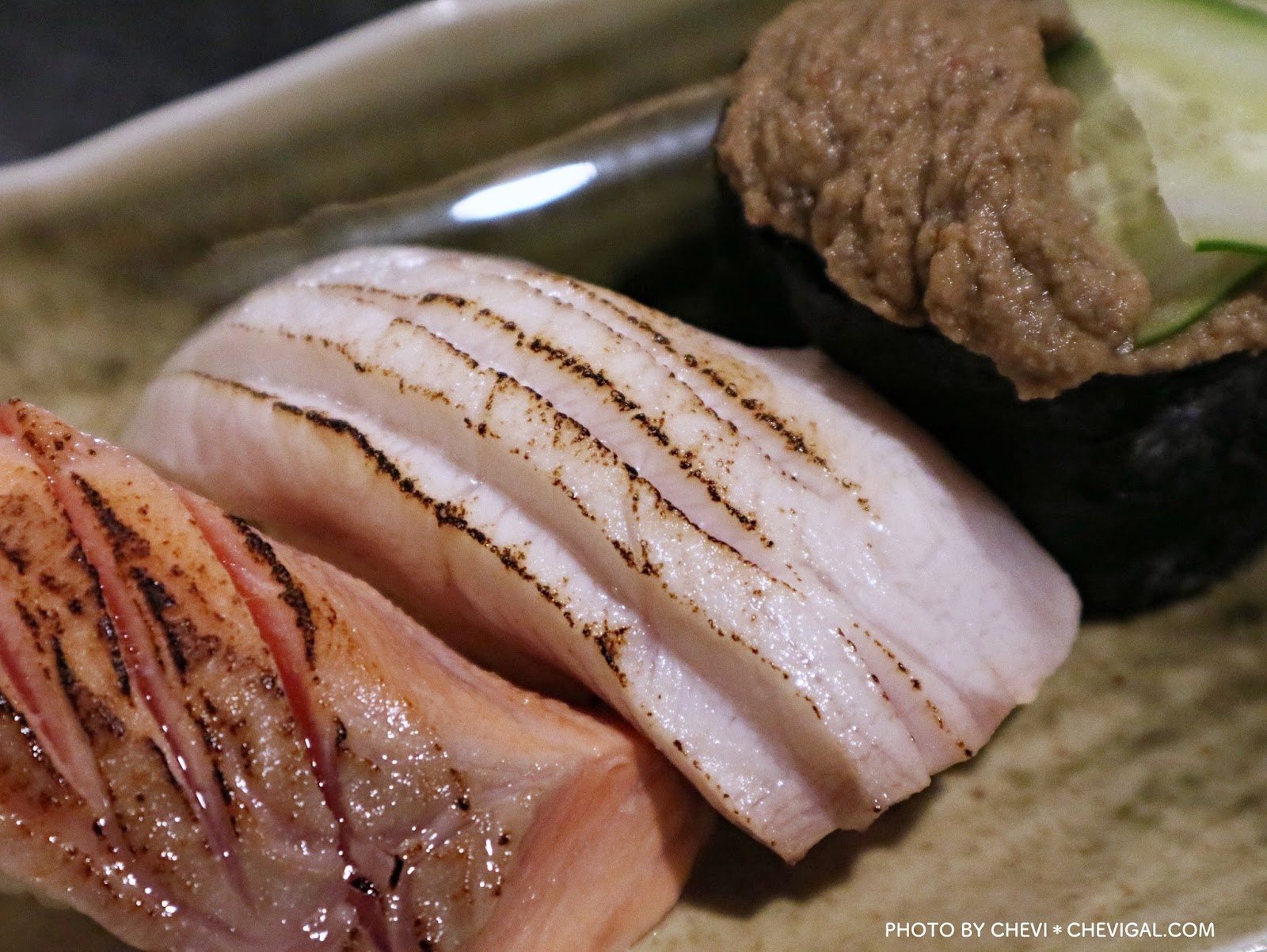 蟹膏壽司($50/個):在一般的日料店裡,比較少看到這款壽司,入口覺得非常鮮甜,搭配上小黃瓜及新鮮的海苔,彷彿自己好像真的正在邊吃螃蟹、邊吃蟹膏的感覺。