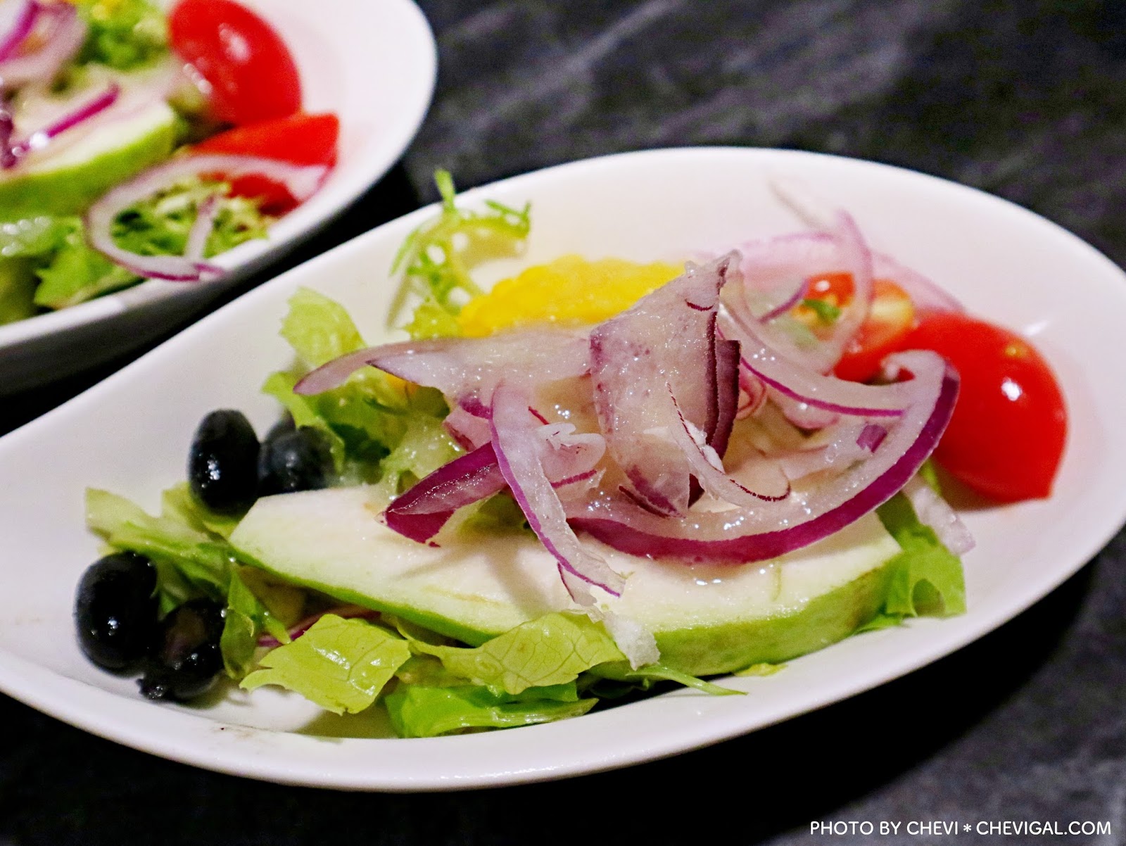 套餐的沙拉,裡頭有著生菜、黑豆、番茄、紫洋蔥、玉米和芭樂切片,份量剛好,醬汁有著淡淡的甜味,搭配上新鮮的沙拉,很順地就吃光光了。