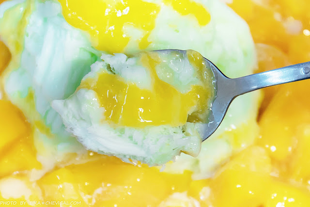 夏季限定的芒果煉乳雪花冰$150元,整份滿滿的芒果給得大方不手軟,光是單吃芒果果肉就很過癮,就算兩個人一起分享也綽綽有餘。