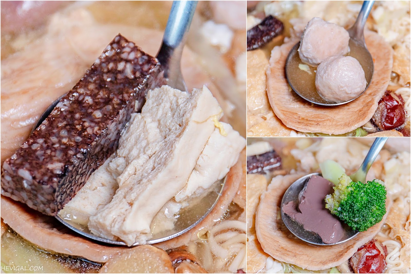 整碗的份量給得不少,裡頭的配料同樣也是相當豐富,像是米血、豆腐、鴨血、貢丸、花椰菜與其他葉菜,吃起來挺有飽足感的!搭配上溫潤好喝的湯頭,冷冷的天氣喝起來特別舒服。