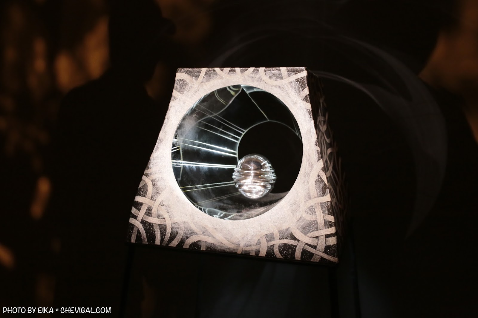 這件作品更是首次於台灣亮相,運用電磁感應原理加上精細的手工技術,在黑暗的空間裡迸發出令人驚嘆的視覺震撼。魚兒自己覺得有點像是帳篷的造型,有著天穹的意象,你們覺得呢?