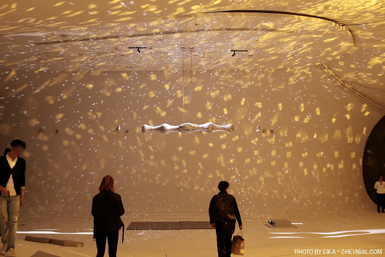 展場裡頭開放拍照,不過因為作品著重在光影的流動呈現,所以是禁止使用閃光燈的,參觀的時候可以注意一下~