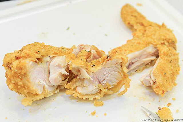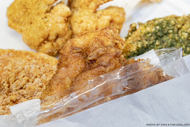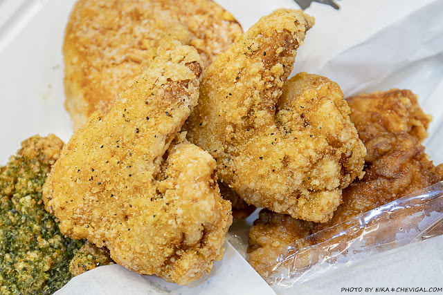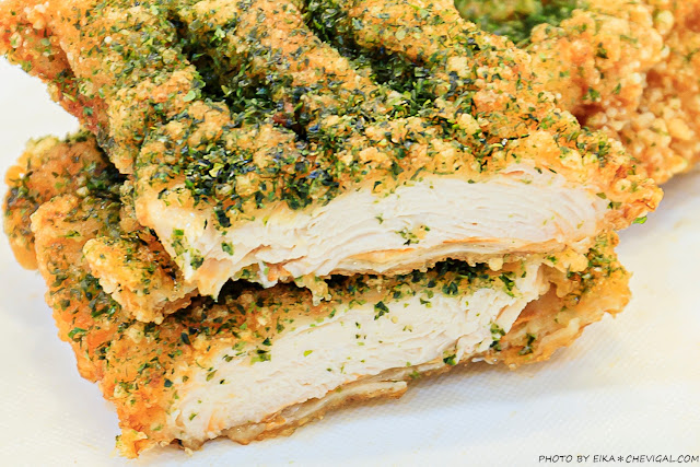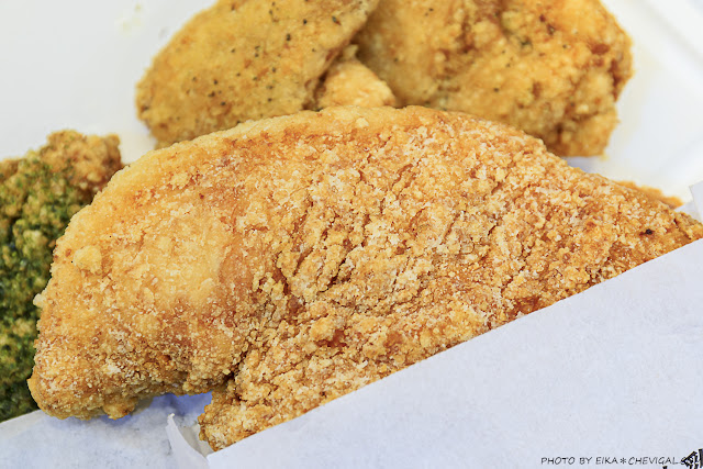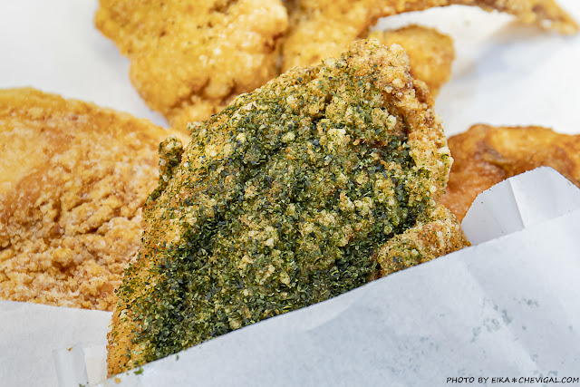金黃的外皮表面還撒有獨家特製的青蔥椒鹽,有著淡淡的鹹香卻又不鹹膩,更能襯托出雞肉本身的鮮甜風味,口感甚至比雞排來得更多汁!