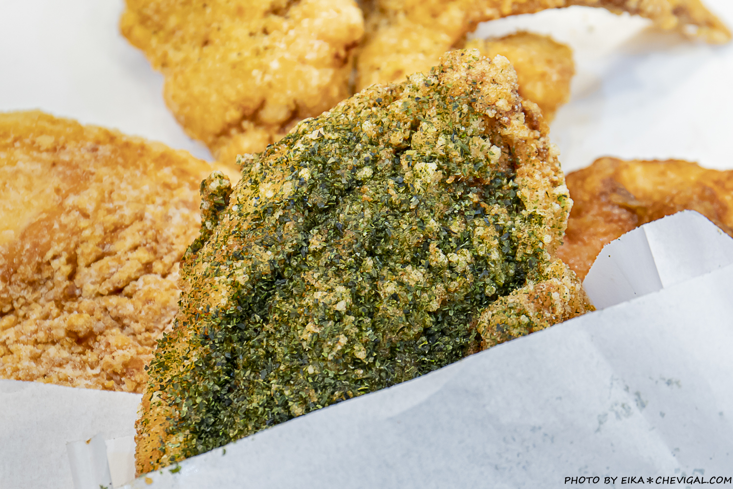這天另外點了以前沒有吃過的海苔口味,可以看到表面撒滿了滿滿的海苔粉,真的完全不手軟!金黃香脆的外皮,搭配上日式爽口的海苔粉,每口都能感受到飽滿的海苔清香。