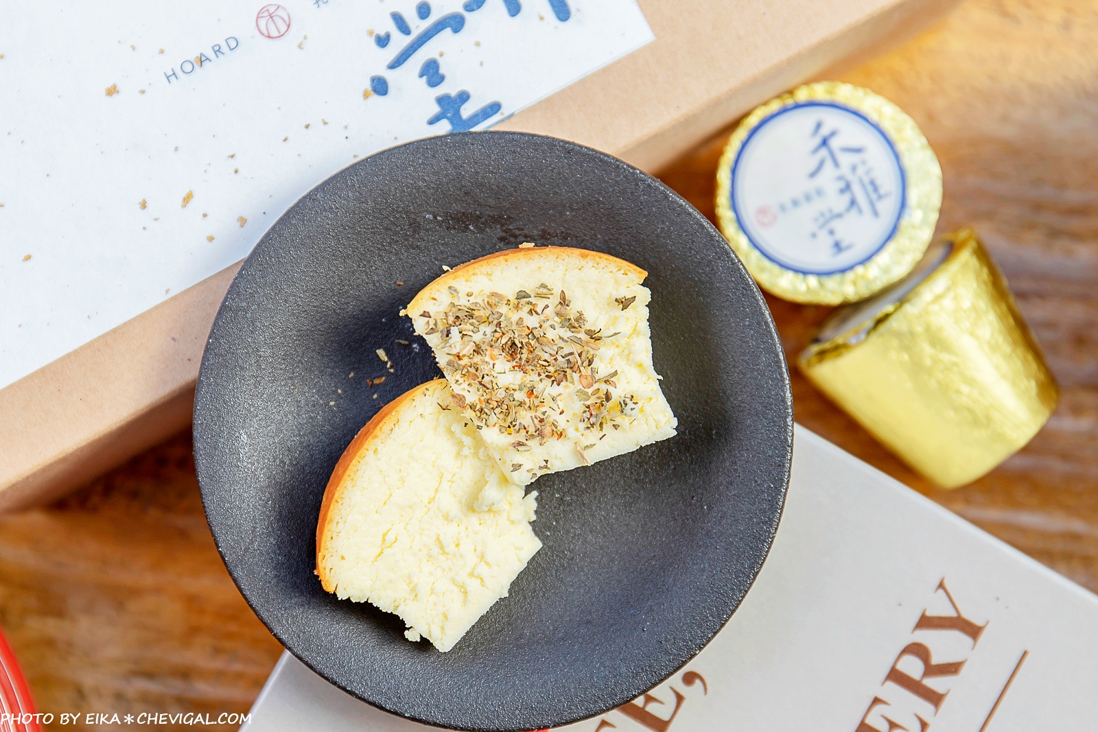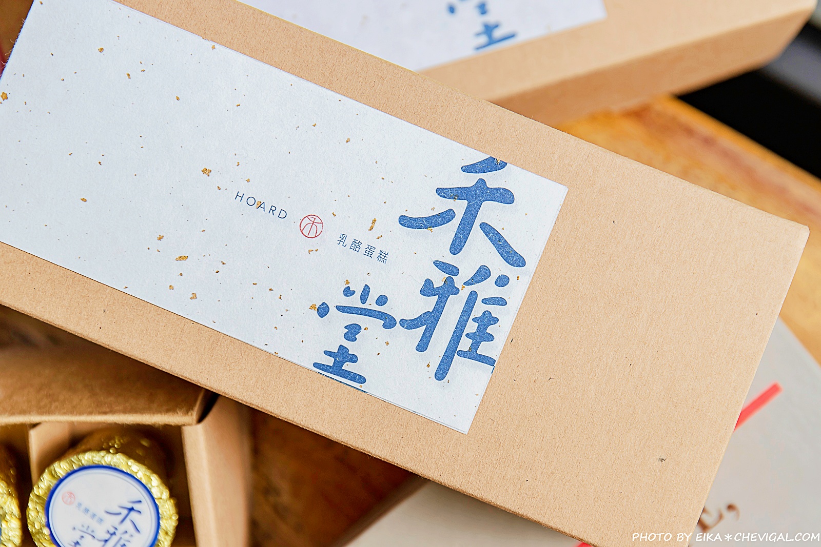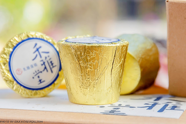 禾雅堂乳酪蛋糕捨棄了華麗繁複的包裝,選擇以最單純的紙盒外觀呈現;沉穩的深藍色書法字體,搭配上日本金箔紙的點綴,簡單大方又不失質感,自用送禮兩相宜。