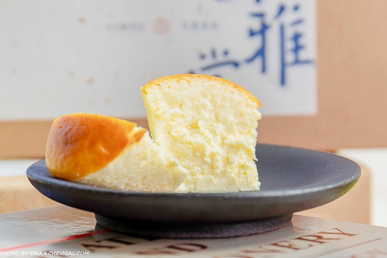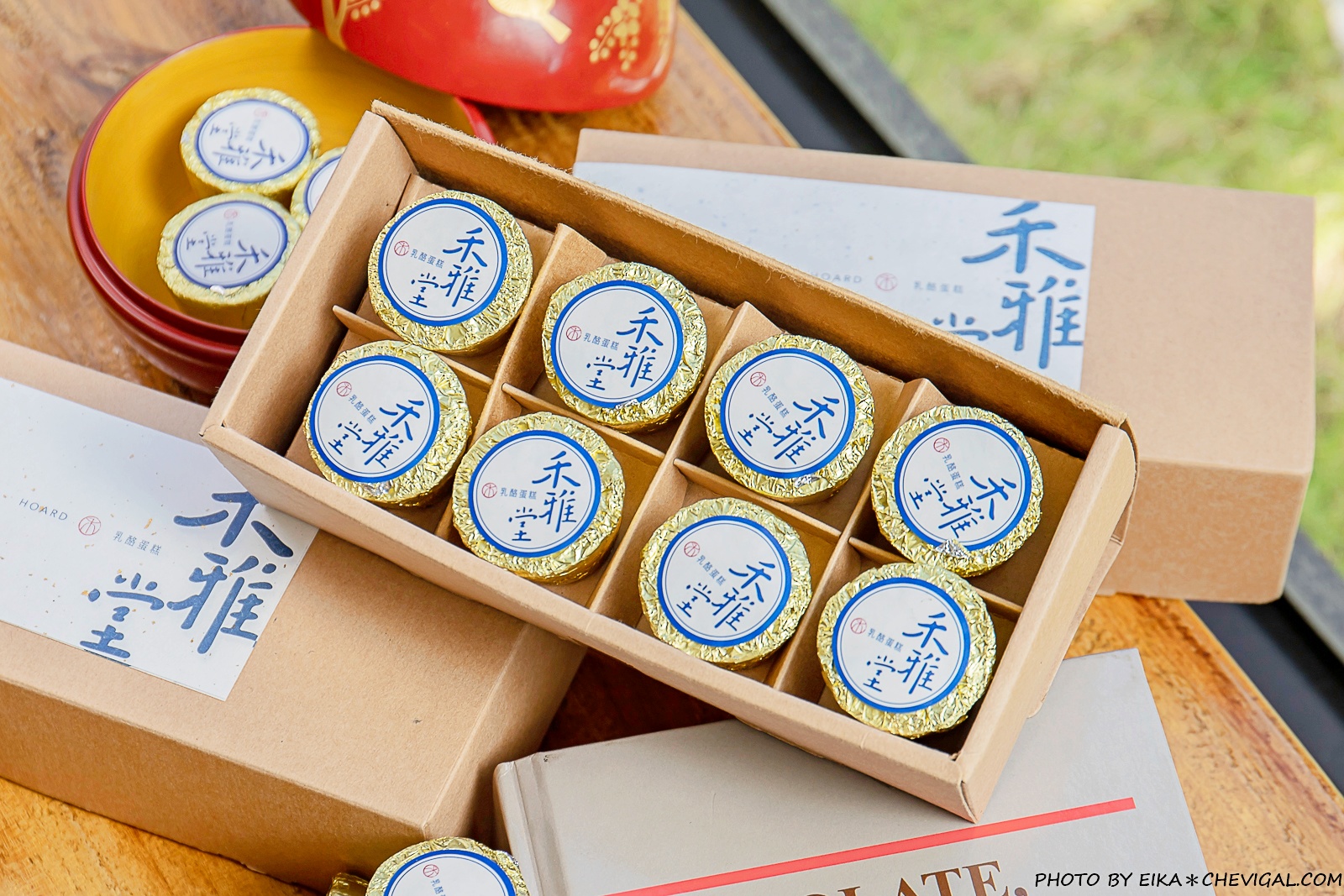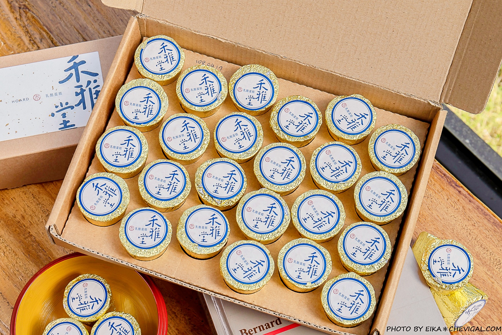 禾雅堂乳酪蛋糕捨棄了華麗繁複的包裝,選擇以最單純的紙盒外觀呈現;沉穩的深藍色書法字體,搭配上日本金箔紙的點綴,簡單大方又不失質感,自用送禮兩相宜。