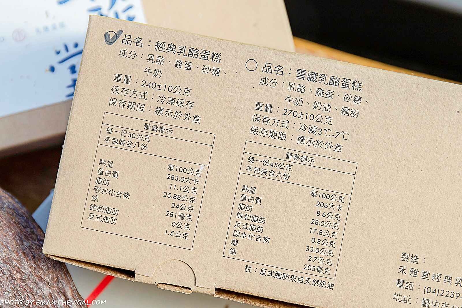 紙盒底部均有仔細註明品名、成份、重量、保存方式與期限,盒內也有內附保冷劑;像我們這天品嚐的經典乳酪蛋糕,放在正常室溫下5小時沒問題,如果冷凍保存甚至可以長達一個月之久。