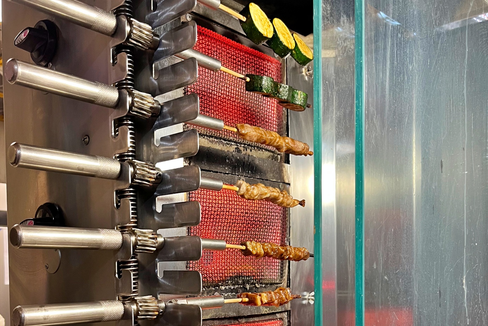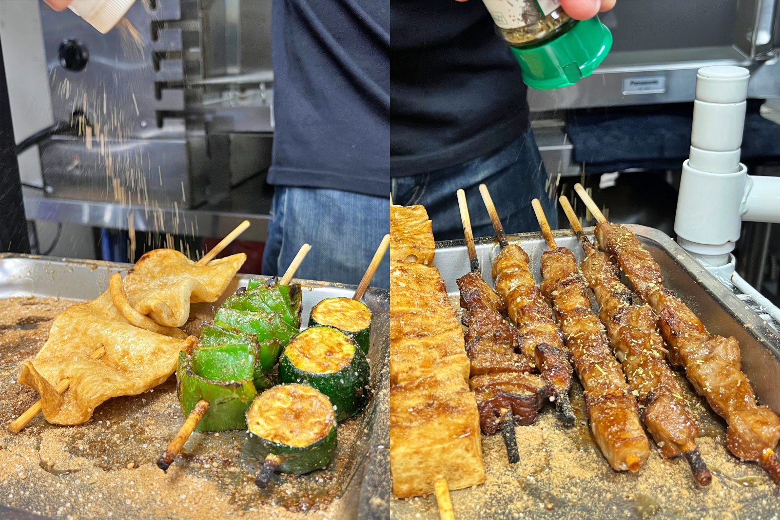 門口擺著一台直立式烤爐,烤手熟練掌握每種食材的特性。最讓我喜歡的是,這裡的串燒都是從生肉直接現烤,不會事先油炸,吃起來清爽不油膩,熱騰騰端上桌真的超滿足!
