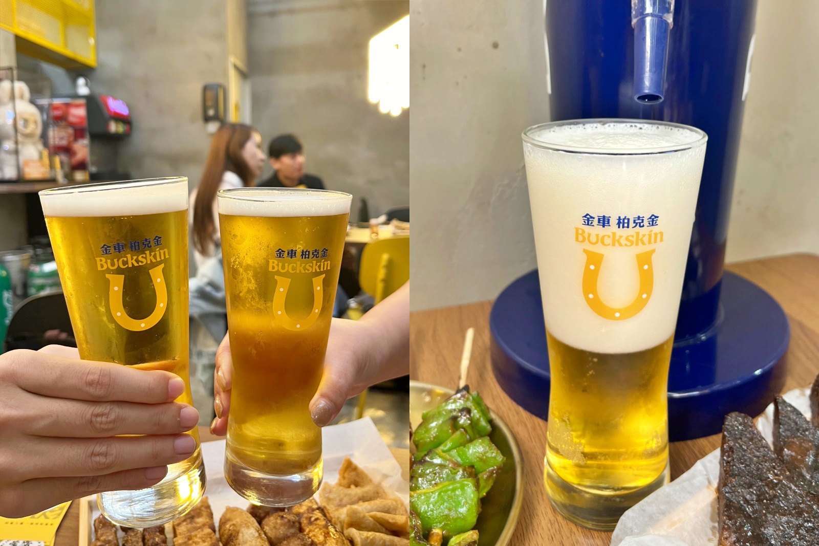 柏克金生啤提供德式小麥與黃金拉格兩種口味,我們這天選的是黃金拉格。酒體清爽輕盈,入口順口,就連平常對啤酒很挑的我也立刻愛上,特別適合搭配重口味串燒,女生接受度也很高喔!