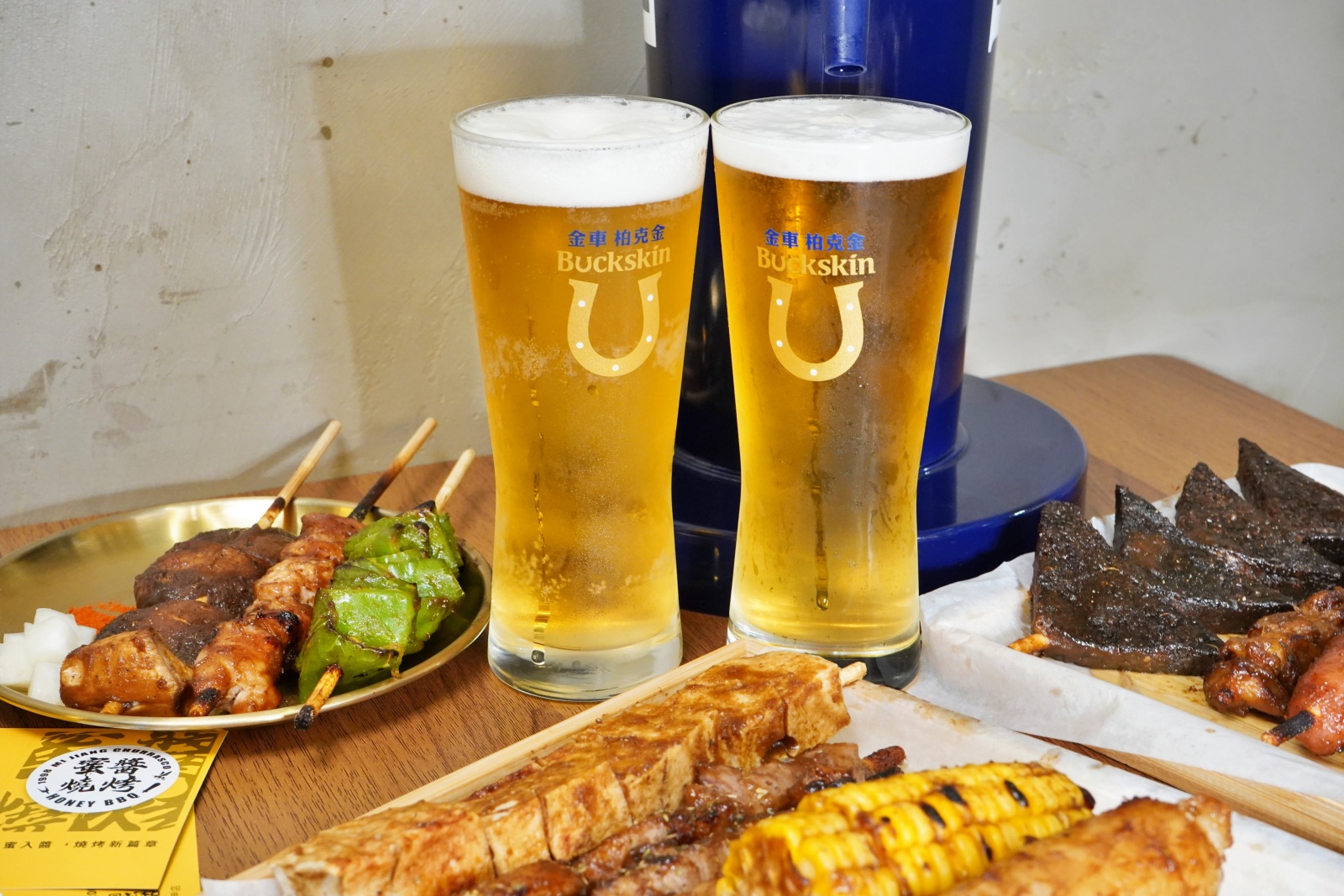 不少朋友來到蜜醬燒烤,都是為了他們家的生啤酒而來!因為整柱鮮榨三公升的柏克金生啤酒柱,竟然只要350元,三五好友來聚餐搭配串燒超划算!(未滿18歲請勿飲酒)