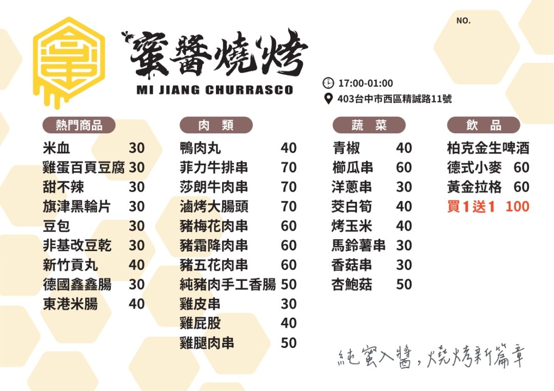 蜜醬燒烤菜單