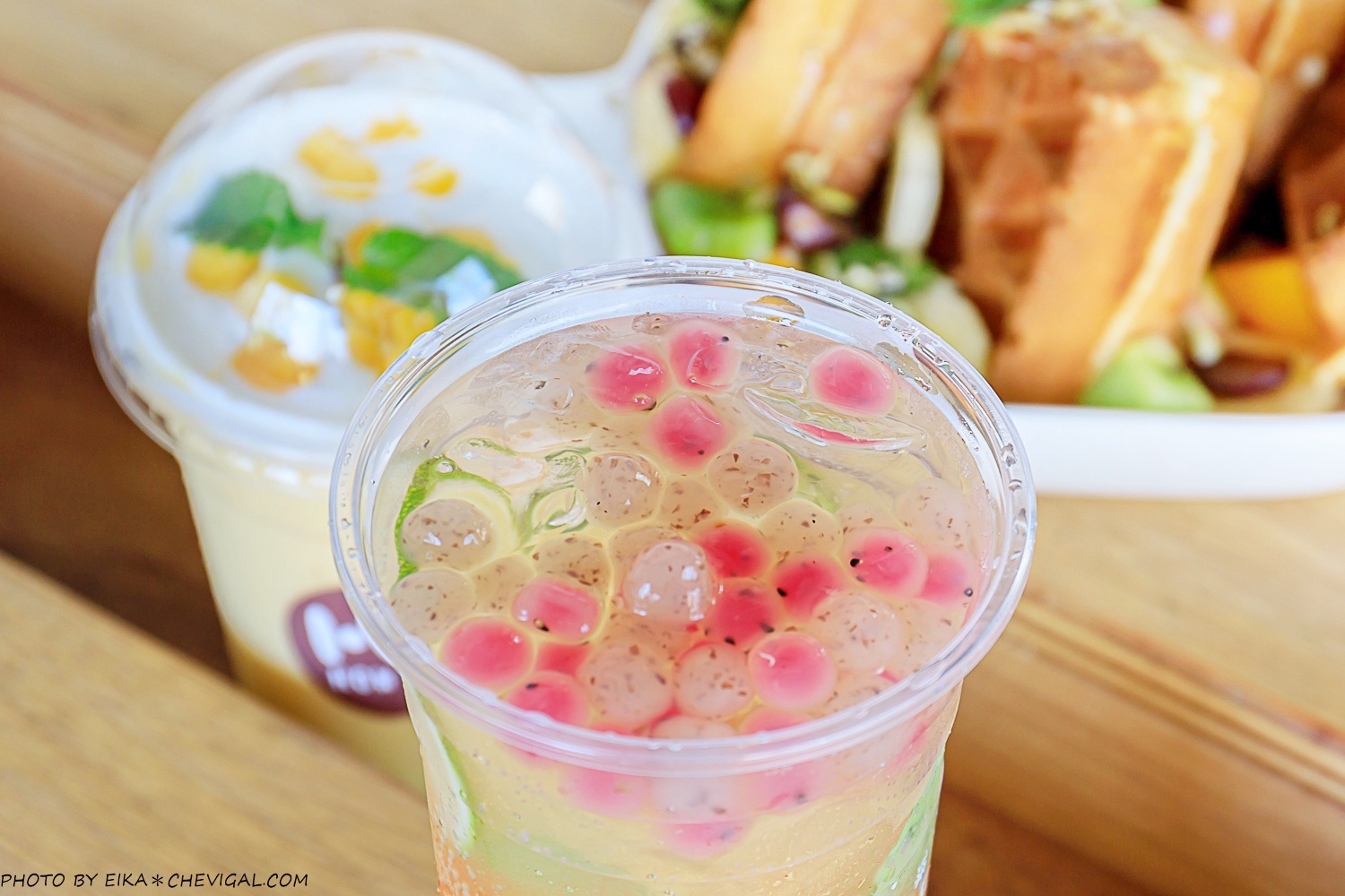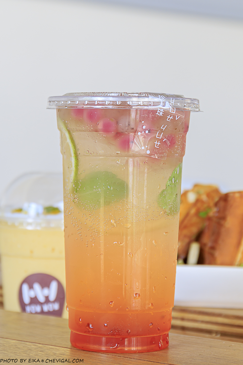 另一杯我們點的是粉紅蘋果氣泡飲$85元,這款飲料的甜度是固定半糖,氣泡感十分明顯,裡頭的QQ天使珍珠可以說是店家的招牌!