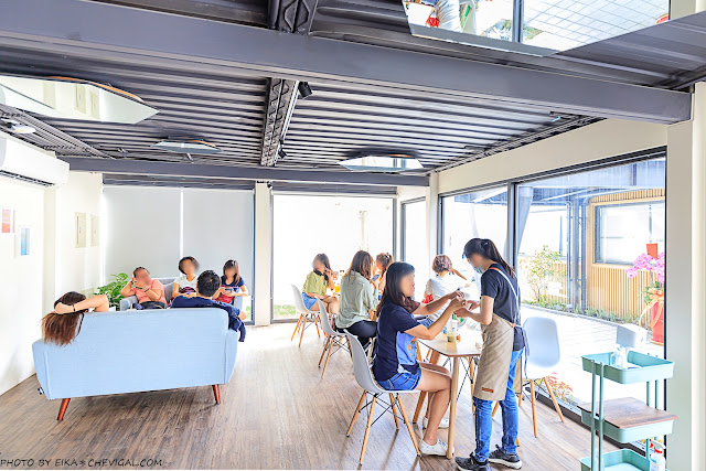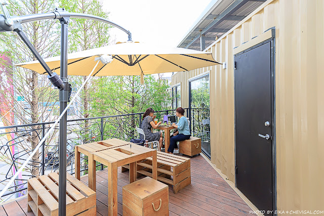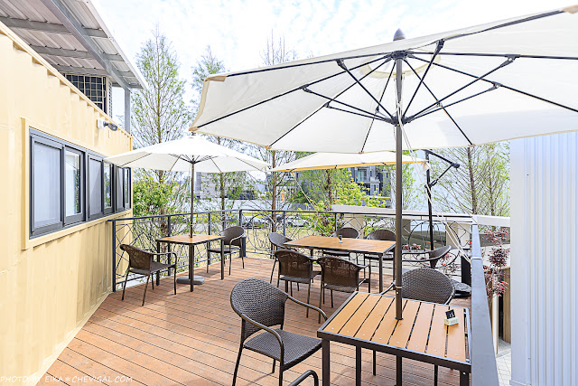戶外也有一整區的座位,如果不想要在室內人擠人的話,這區倒是還不錯的選擇;尤其是接近傍晚時,還能感受到微微的涼風,所以我們在室內吃完餐點後就跑來這裡聊天啦~