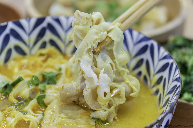 以大骨與蔬菜熬煮而成的湯頭,帶有輕盈的奶香味,清新淡雅的咖哩香氣與辣度讓湯喝起來的感覺更加順口,口味比較清淡的朋友可以嚐鮮看看,如果是口味比較重的朋友,比較建議你們可以試試看店內的醬燒獅丸麵!