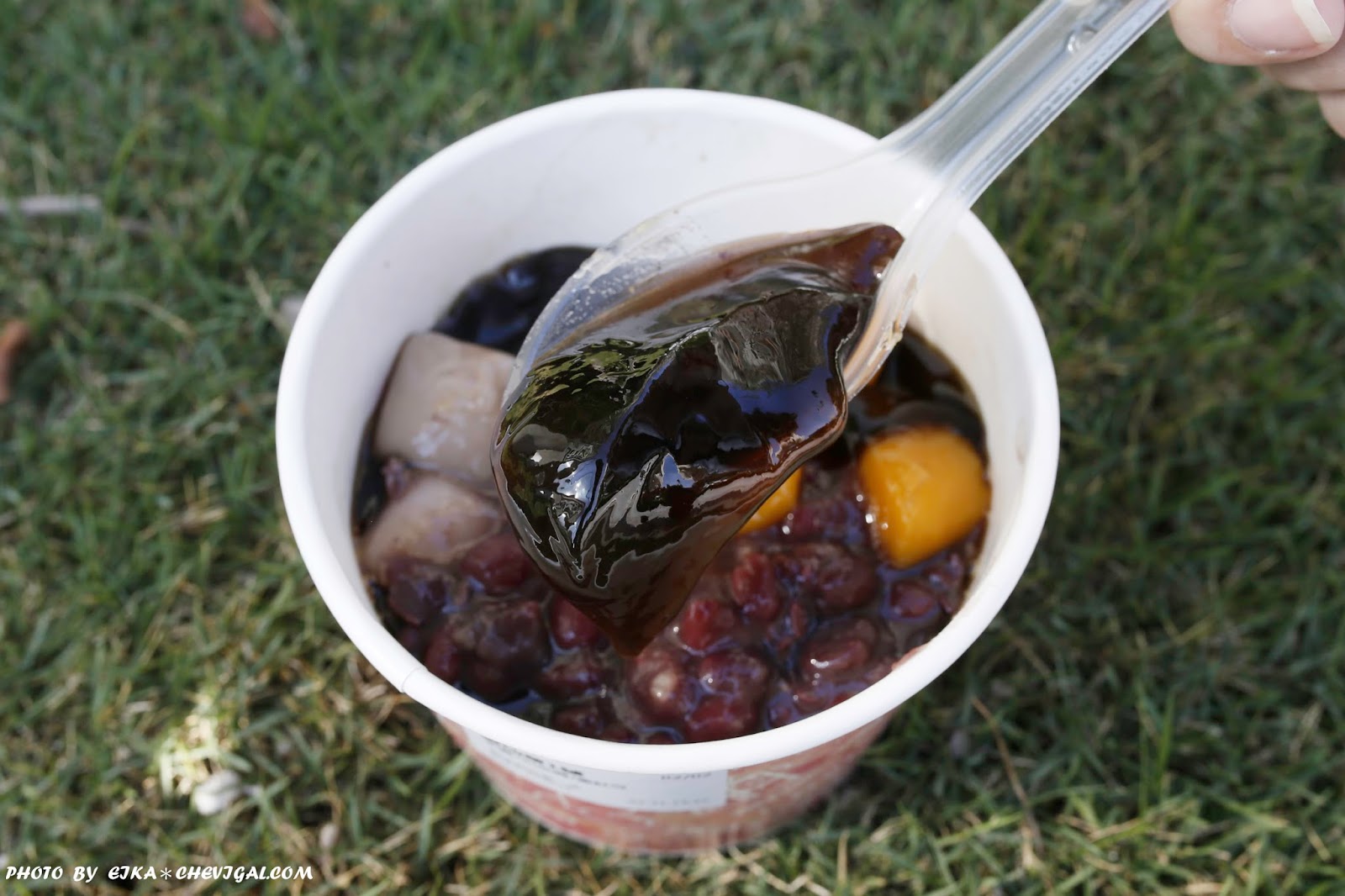 蜜紅豆吃起來真的有讓人驚艷的感覺,入口即化綿綿的口感搭感覺很棒,雖然單吃它甜味比較重一些,不過搭配其他的配料與嫩仙草一起入口後,可以增加整體的香氣與層次感。