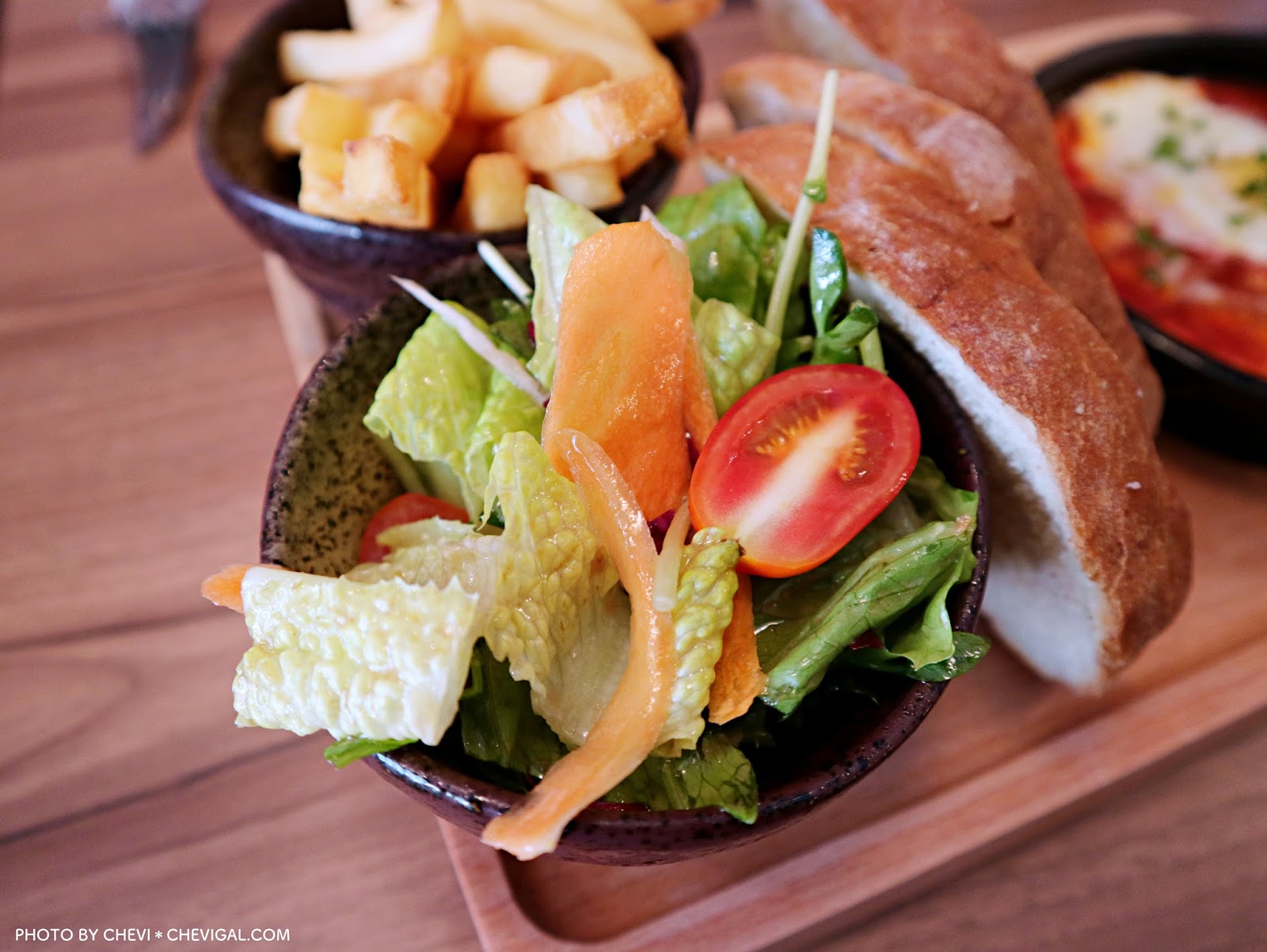 雖然是很濃郁的茄汁,但卻不會有讓人有點抗拒的超濃厚番茄味(不敢喝番茄汁的朋友一定懂XD),可以以麵包沾取醬汁來吃,搭配太陽蛋的口感會更加醇厚~