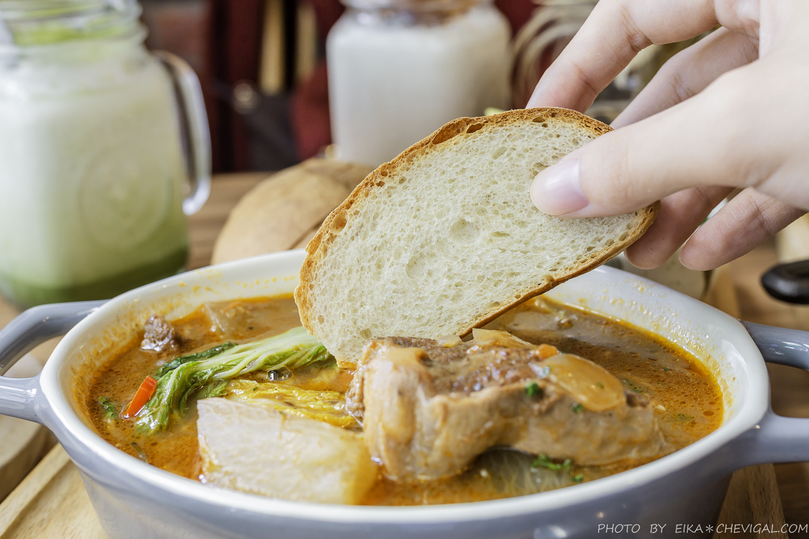 安格斯嫩肩牛肉的肉質吃起來沒有惱人的肉筋,非常軟嫩,裡頭加入了紅蘿蔔、白蘿蔔、馬鈴薯、蘑菇、白菜、青江菜、洋蔥與芹菜等多種新鮮蔬菜,並以小火燉煮數小時,整碗都是鮮甜蔬菜與鹹香肉汁交織而成的精華!