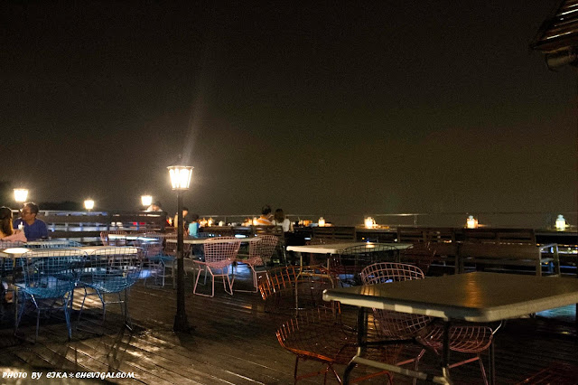進到園區內後,店員會詢問想要坐在室內或室外,並會引導帶位;想來看夜景的我們當然是選擇室外的三樓啦!不過這層的樓板容易振動,人多的時候會稍嫌擾人,介意的朋友可以選擇二樓。