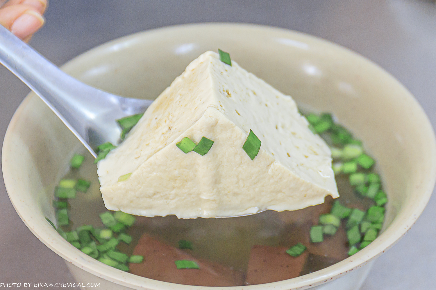 店家很熱情的送我們一塊豆腐嚐嚐XD,豆腐給的還算大塊,吃起來口感很嫩,黃豆的香氣也很濃郁。
