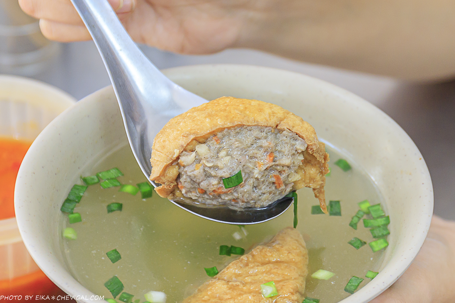 豆腐肉油豆腐口感很有彈性,肉丸吃起來感覺有加入荸薺,整體口感層次感豐富;鹹度吃起來也是恰到好處,搭配清甜的湯頭還不錯。