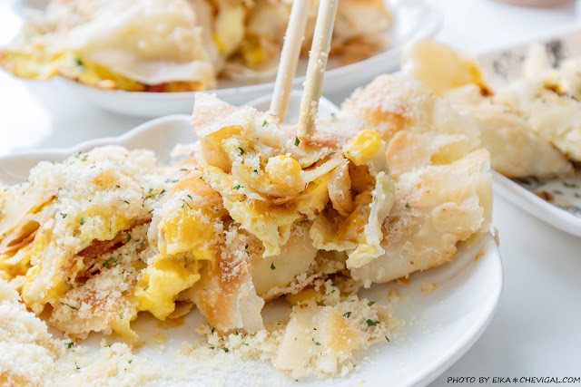 起司控們更是不能錯過嘉香的玉米起司蛋餅!因為不只內餡裡面吃得到起司,就連表面也是撒滿了滿滿的起司粉!用料非常大方,每口都能吃到香濃的起司~