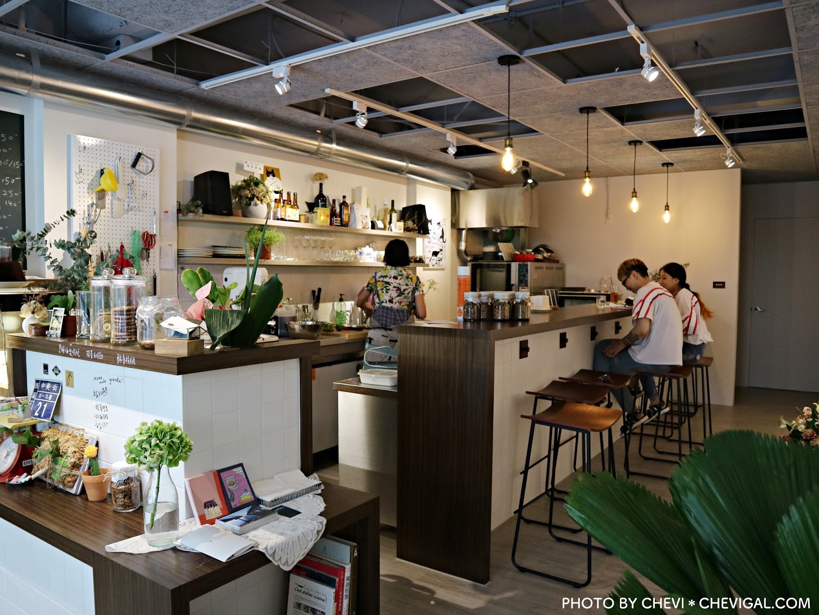 內部的裝設清新淡雅,主要以木質桌椅,與帶有綠意的植栽簡單點綴。