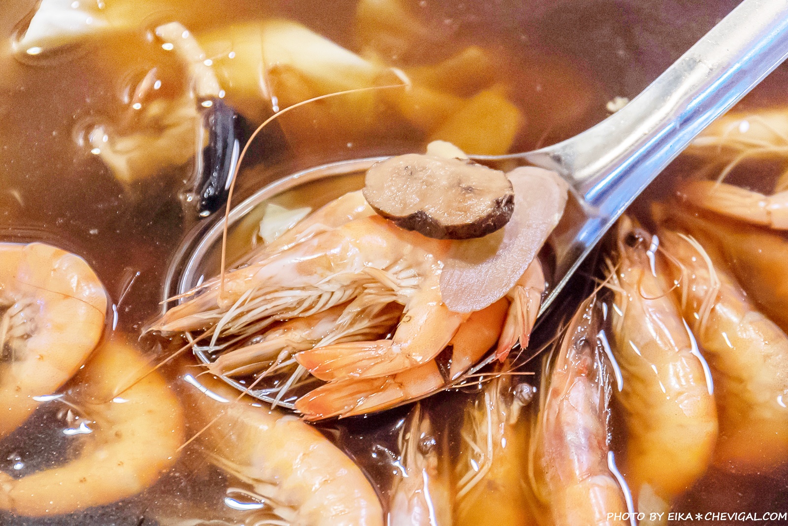 整鍋除了海鮮與多種中藥材,更加入蔬菜一同熬煮,讓湯頭的鮮甜度更加飽滿;蝦子本身的肉質略有彈性,鮮味與中藥風味意外地不顯衝突感,其實還挺順口的。