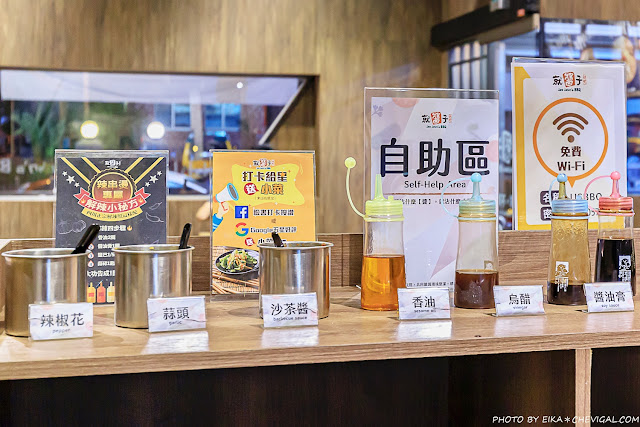 櫃檯旁還有醬料自助區,各式基本醬料一應俱全,搭配串燒、泡麵都很不錯,或是搭配我們去年冬天吃到的辣串燙也很有特色,店家還有貼心地分享醬料的調製方法!