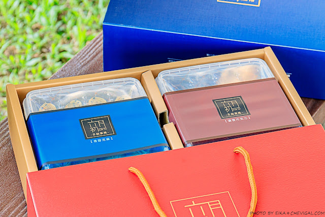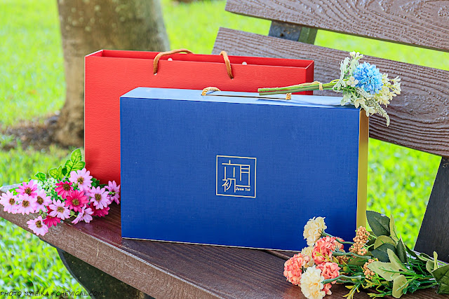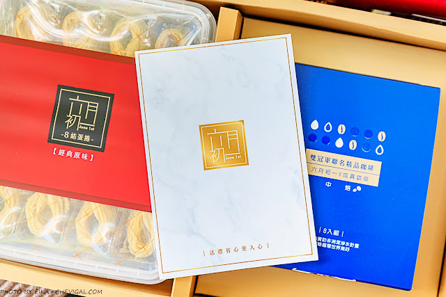 另一組我們帶的是六月初一&成真咖啡禮盒,售價$575元;寶藍色的手提禮盒相較於前面正紅色的禮盒來說,顯得內斂又不失質感,搭配上燙金字體,也是很年輕現代的配色。