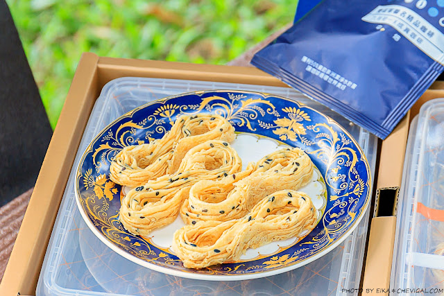 這組禮盒我們選擇的是經典原味蛋捲,主要原料選用了洗選蛋、紐西蘭奶粉、麵粉與砂糖;其經典原味蛋捲算是還蠻耐吃的口味,不僅吃得雞蛋的甜香,而且甜度恰到好處,加上比傳統長棒型蛋捲更加紮實酥脆的口感,真的特別涮嘴!