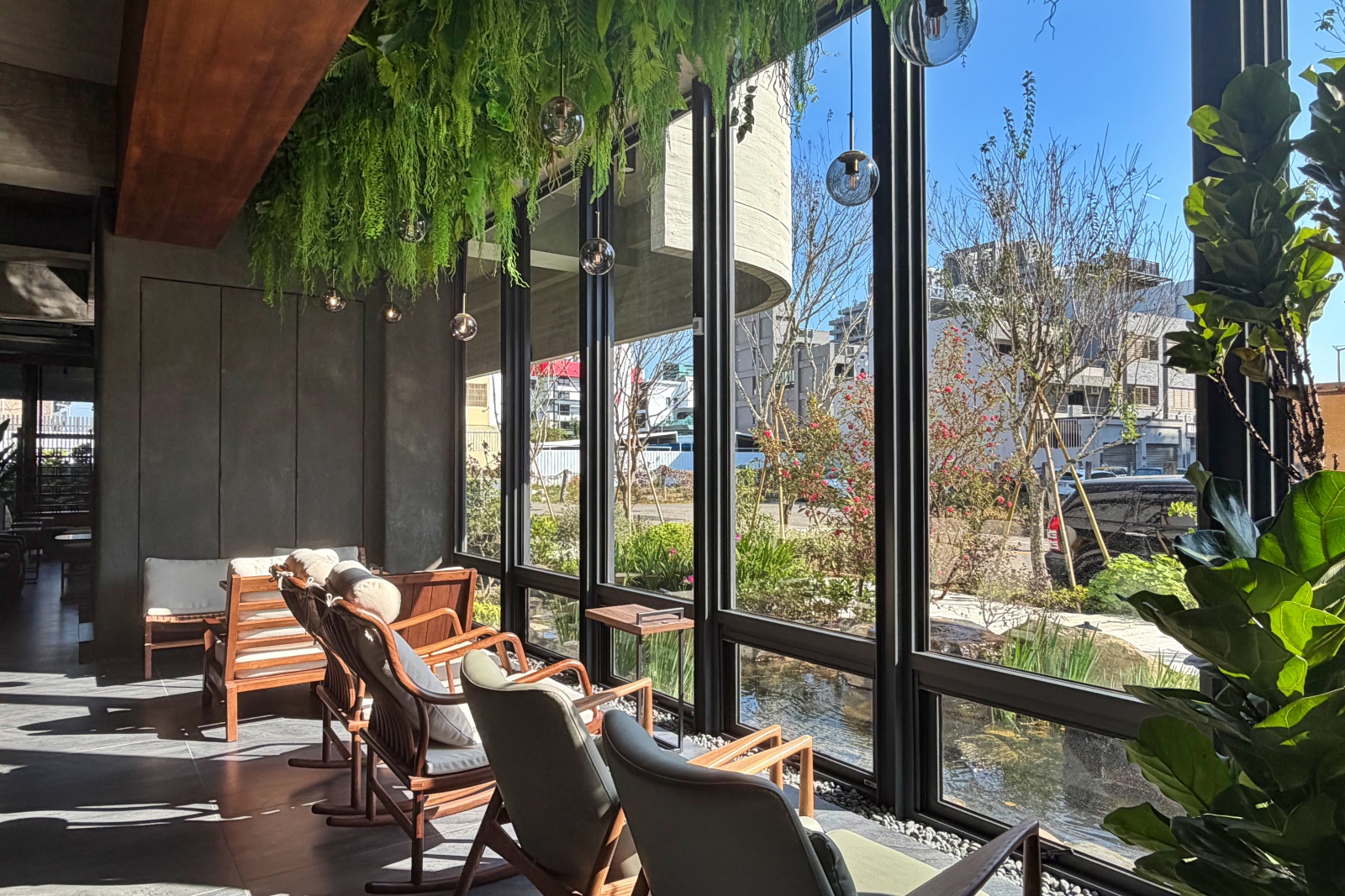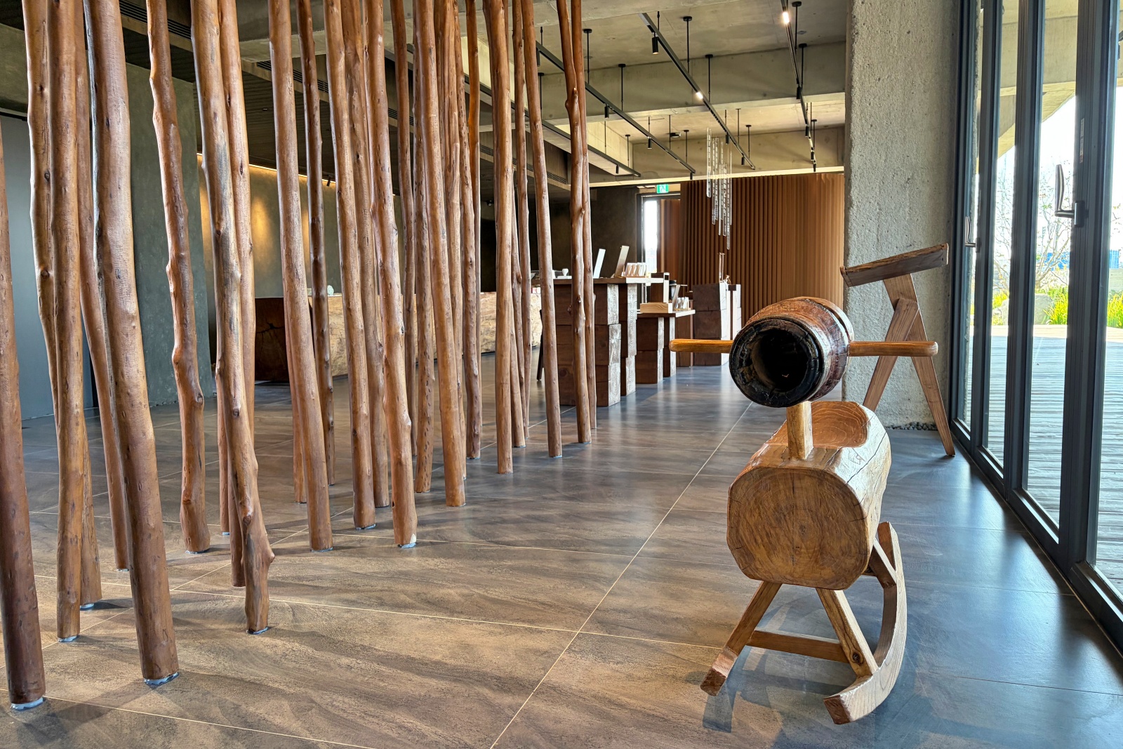 在一樓大廳中,我最喜歡的是靠窗的座位區。這裡特別設置了輕搖椅,彷彿每一次輕輕搖動都能帶著心情慢慢流動。