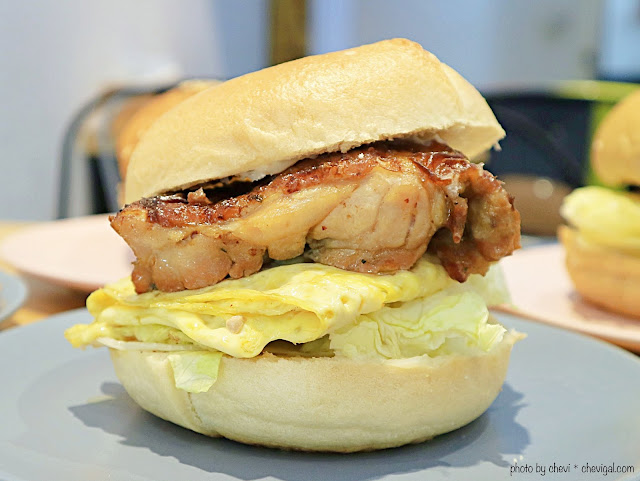 裡頭有著厚蛋、蕃茄、生菜之外,還有店家特製的香草豬排,清新的香草搭配上豬肉的淡淡鹹香,不需要額外加入太多其他醬料,簡單的調味就很不錯。