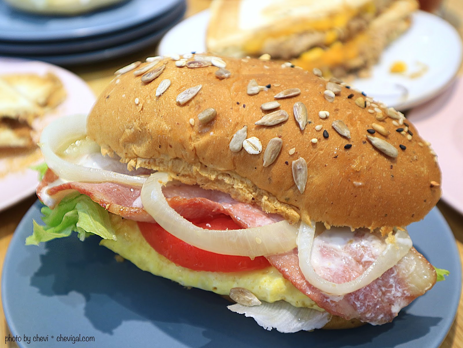 裡頭有著番茄、培根、洋蔥與厚蛋,口感的層次可以說是這天所有堡類當中最為豐富的一款,另外還加入了適量的美乃滋,整體吃起來會比較潤口,但卻不會覺得太膩。