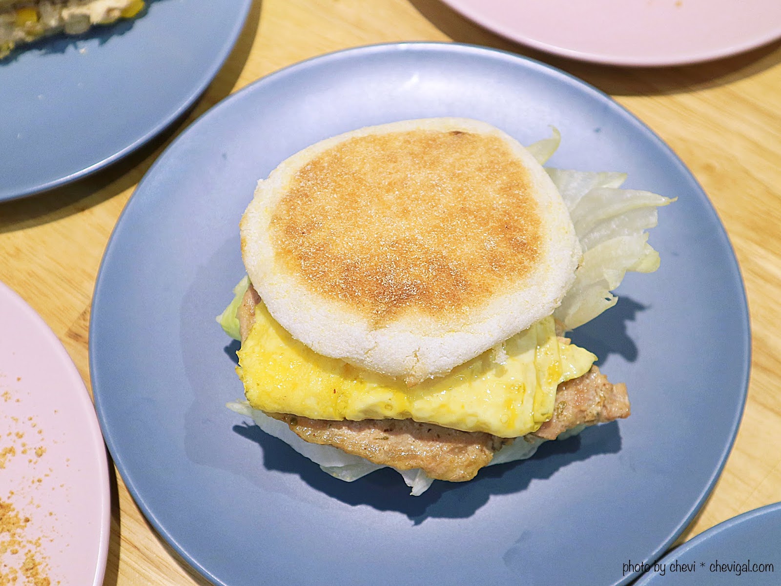 香草豬排厚蛋英式瑪芬堡$55元,如果本身對胚芽漢堡沒有特別偏好的話,可以試試這裡的瑪芬堡,也就是我們常見的滿福堡!