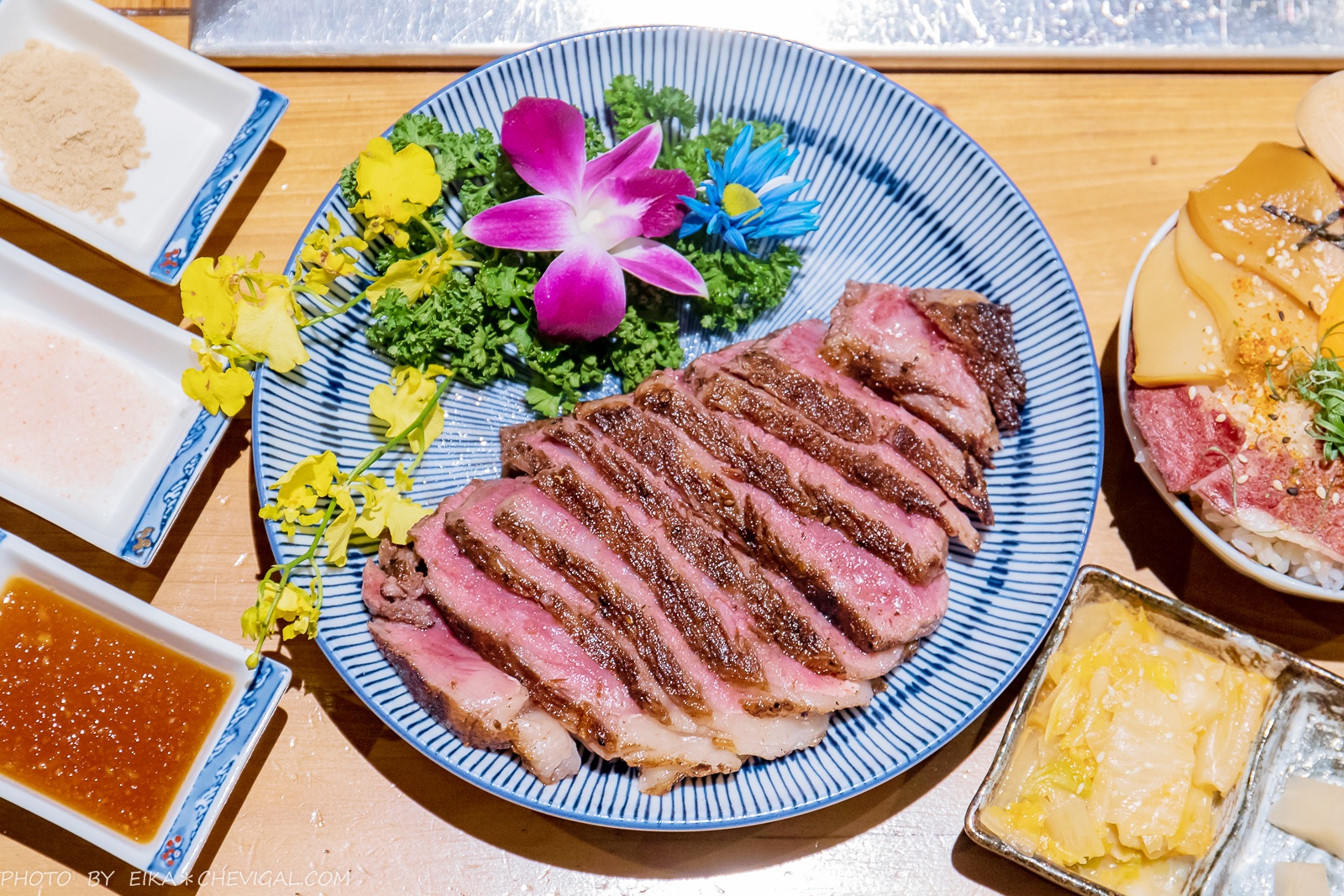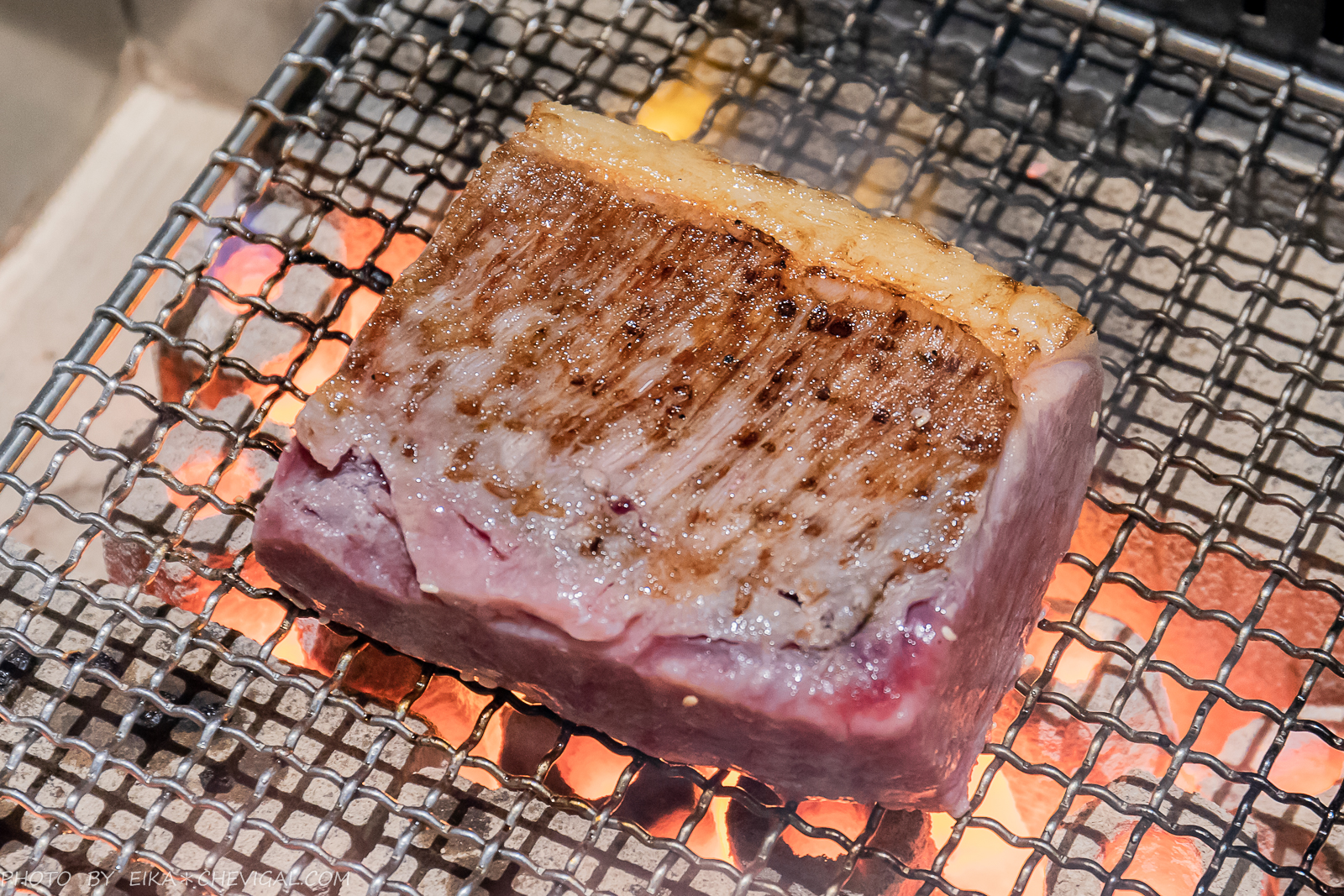 坦白說這真的是我們目前吃過最大塊、最厚實的和牛了,但也因為如此大塊,相對地烤功就會變得非常重要!最悲劇的狀況恐怕就是表面焦掉,但是內裡卻還沒熟透……所以直接交給專業的服務人員就對啦!