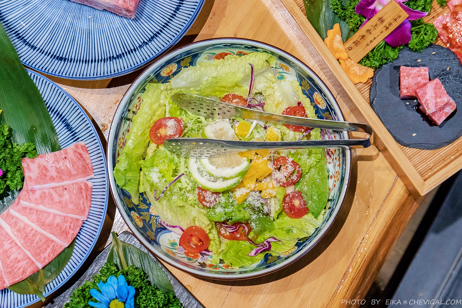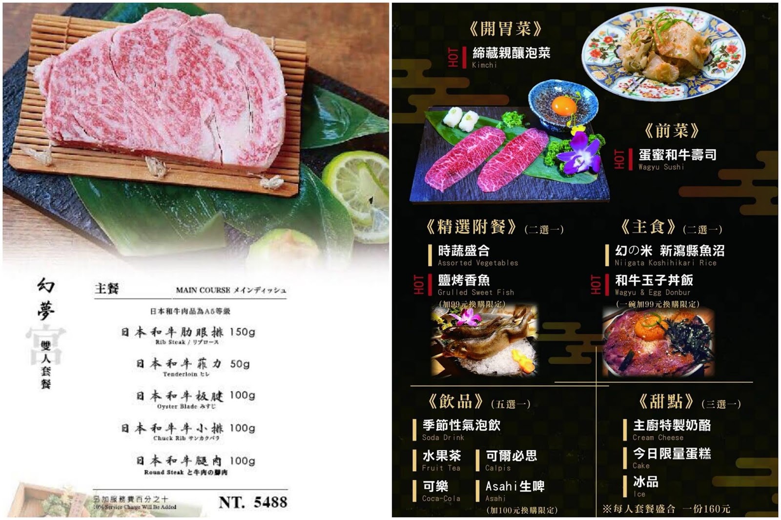 這天我們享用的是幻夢雙人套餐$5488元,包含開胃菜、前菜、精選附餐、主食、飲品與甜點。重點是這裡全程都有專人桌邊服務,完全不用動手處理食材,只要負責耍廢大口吃就對了!