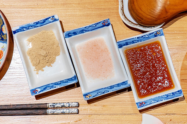 來吃燒肉當然少不了沾醬,而且沾醬種類與其他普通的燒肉餐廳不同,分別有著胡椒鹽、玫瑰鹽與店家特製的梅干蘿蔔泥,我們自己還蠻喜歡搭配梅干蘿蔔泥,鹹甜風味讓燒肉增添了更豐富的香氣層次!