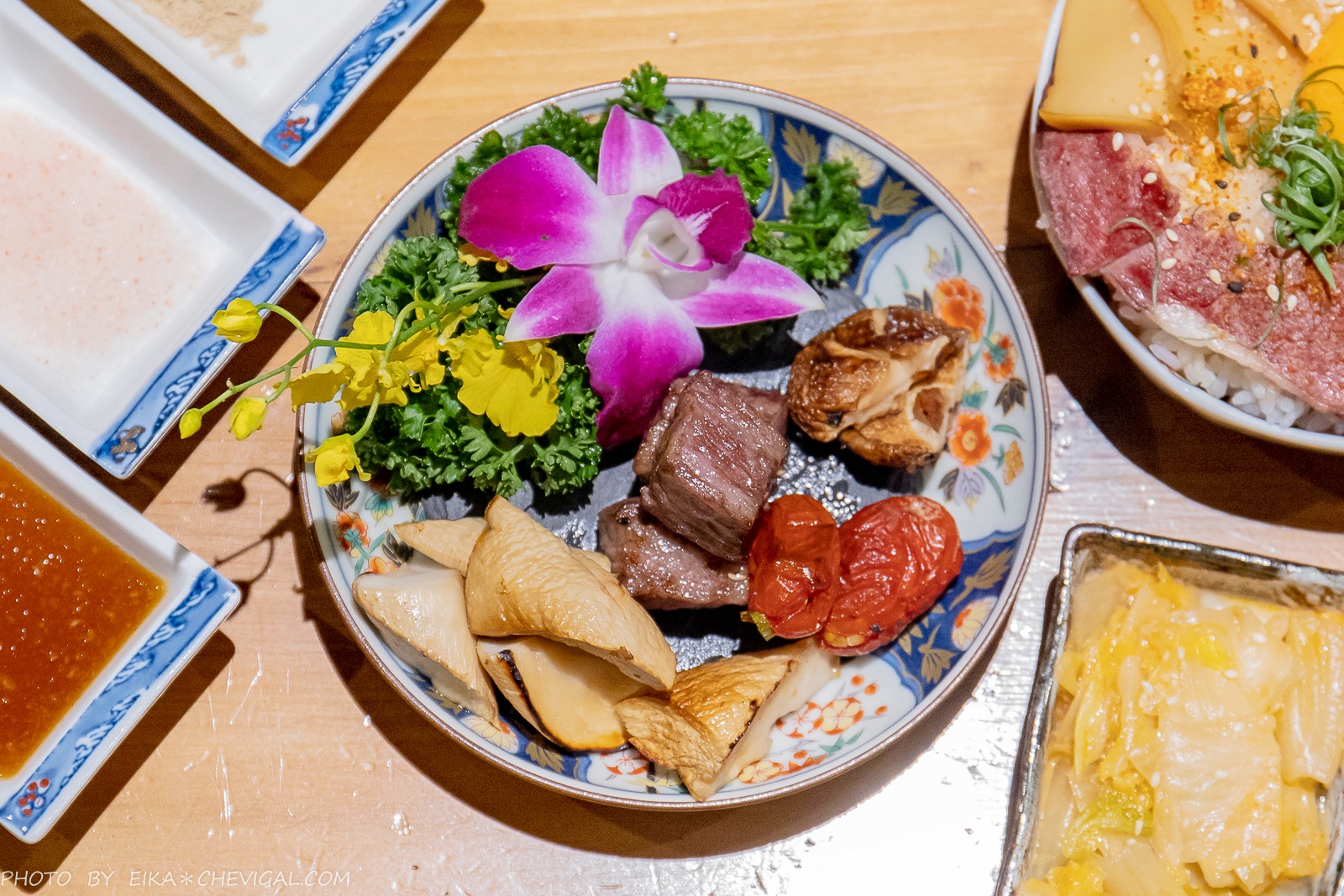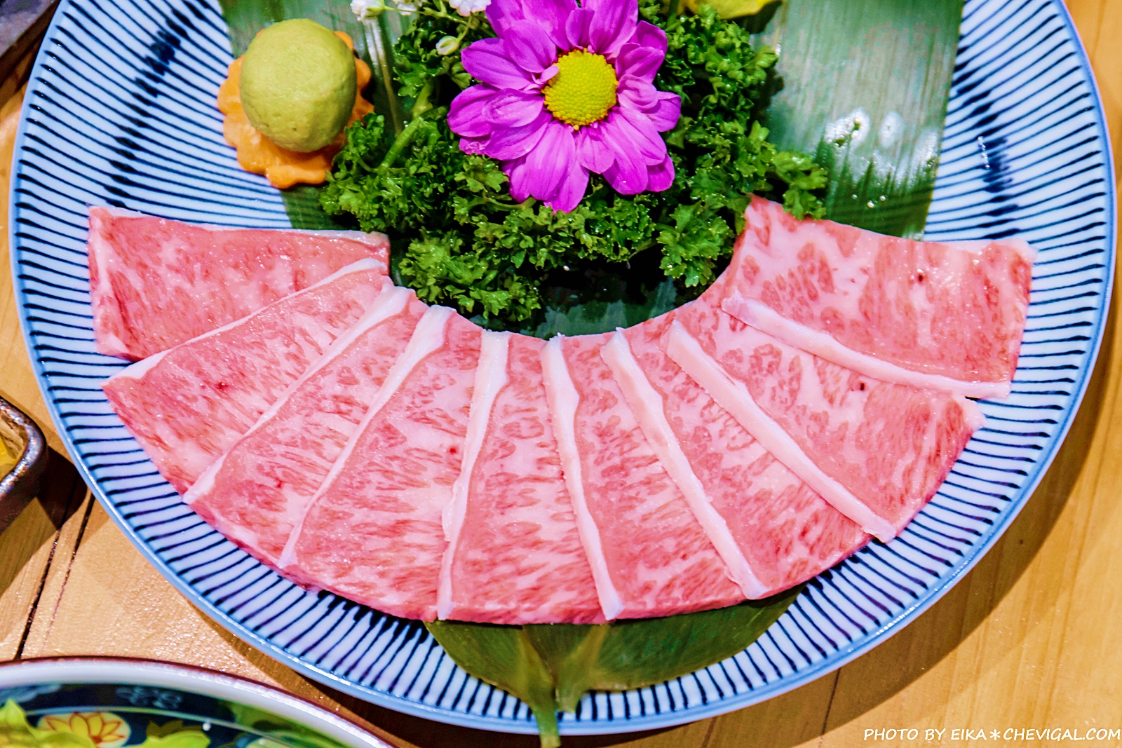 日本和牛牛小排的份量也給得相當大方,幾乎超過半盤都是滿滿的和牛!肉質不只粉嫩欲滴,而且還帶有大理石般的美麗油花~