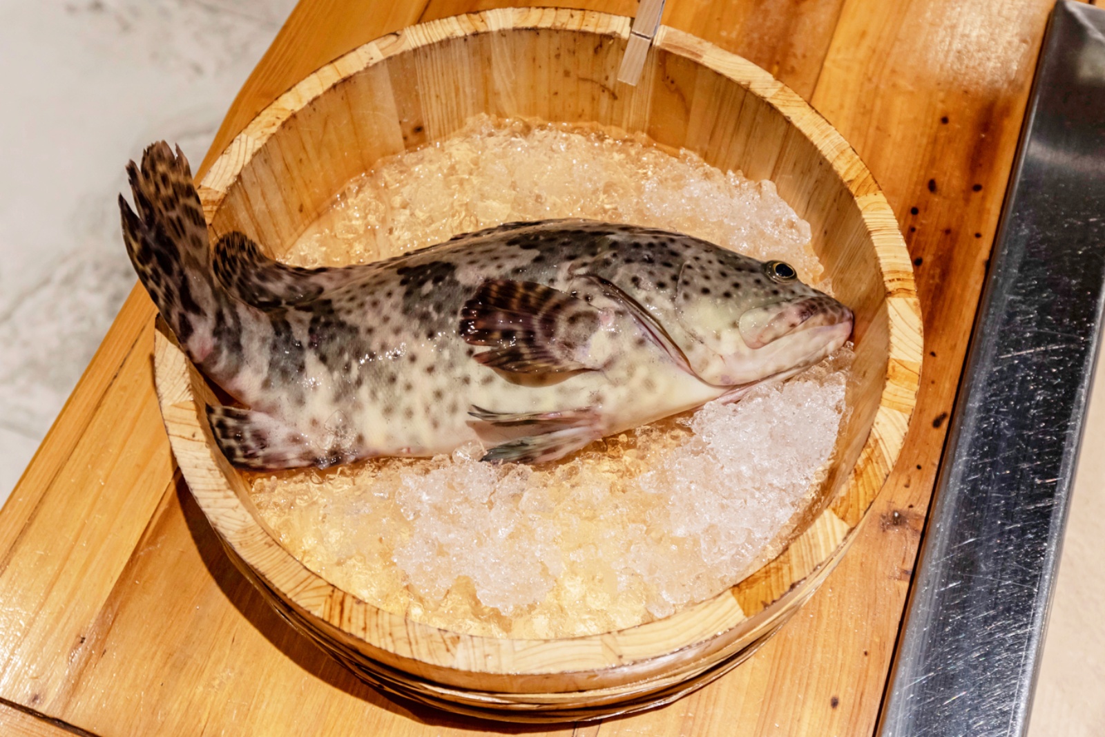 當活體的珍珠龍膽石斑送上桌時,不只是服務人員特別小心翼翼,我們的心跳也是瘋狂加速!因為牠的活動力實在是太強啦!幾乎就是馬上從水中撈起來就送到眼前,就知道到底有多新鮮啦!在我們拍完照之後,就會再送回廚房請專人處理囉~