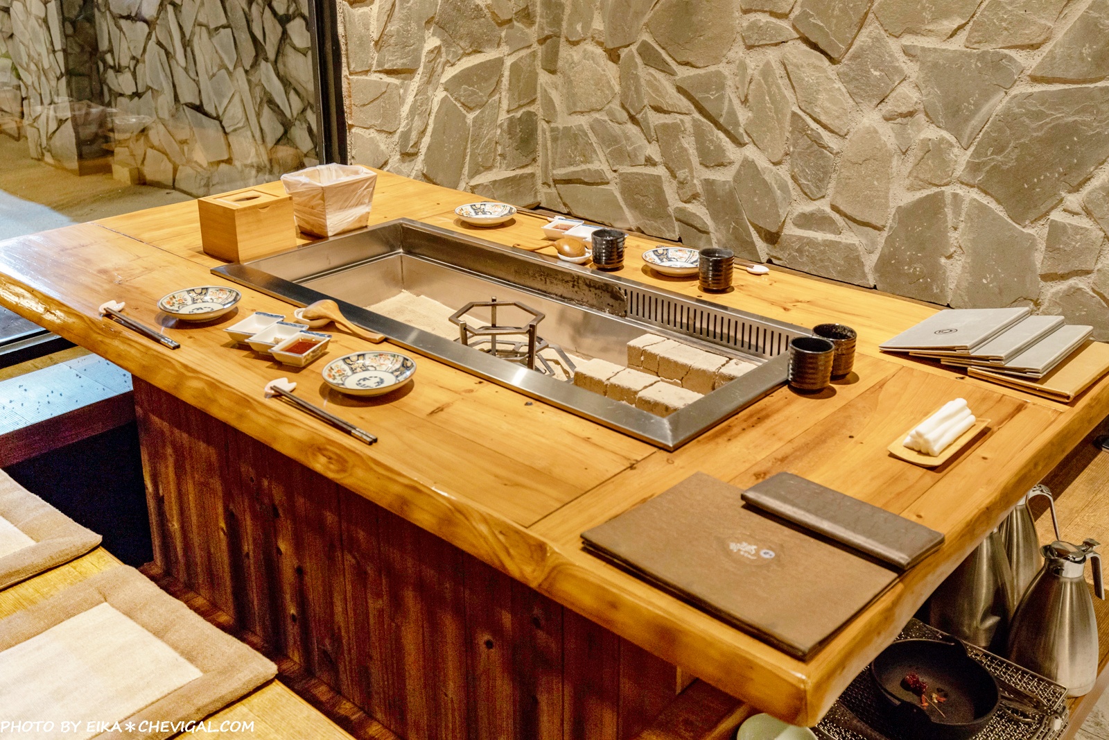 這裡的座位與暮藏的設計極為類似,都是以囲炉裏的概念設計而成,充份展現了日本傳統住宅的文化!每人的座位也都有提供坐墊,久坐也不會覺得不舒服~