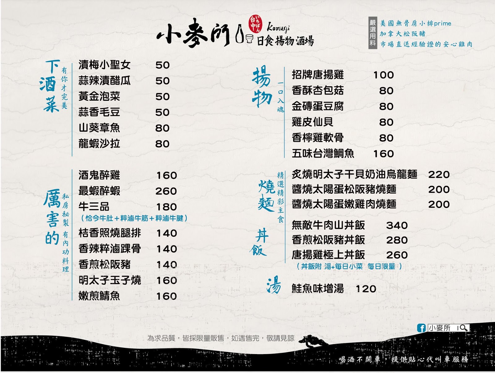 仔細一看菜單,沒想到註解也太可愛了吧!除了有著聽起來很威的「私房秘製有內功的料理」,還有下酒菜、揚物、燒麵、丼飯與湯品,選擇還蠻多元的!
