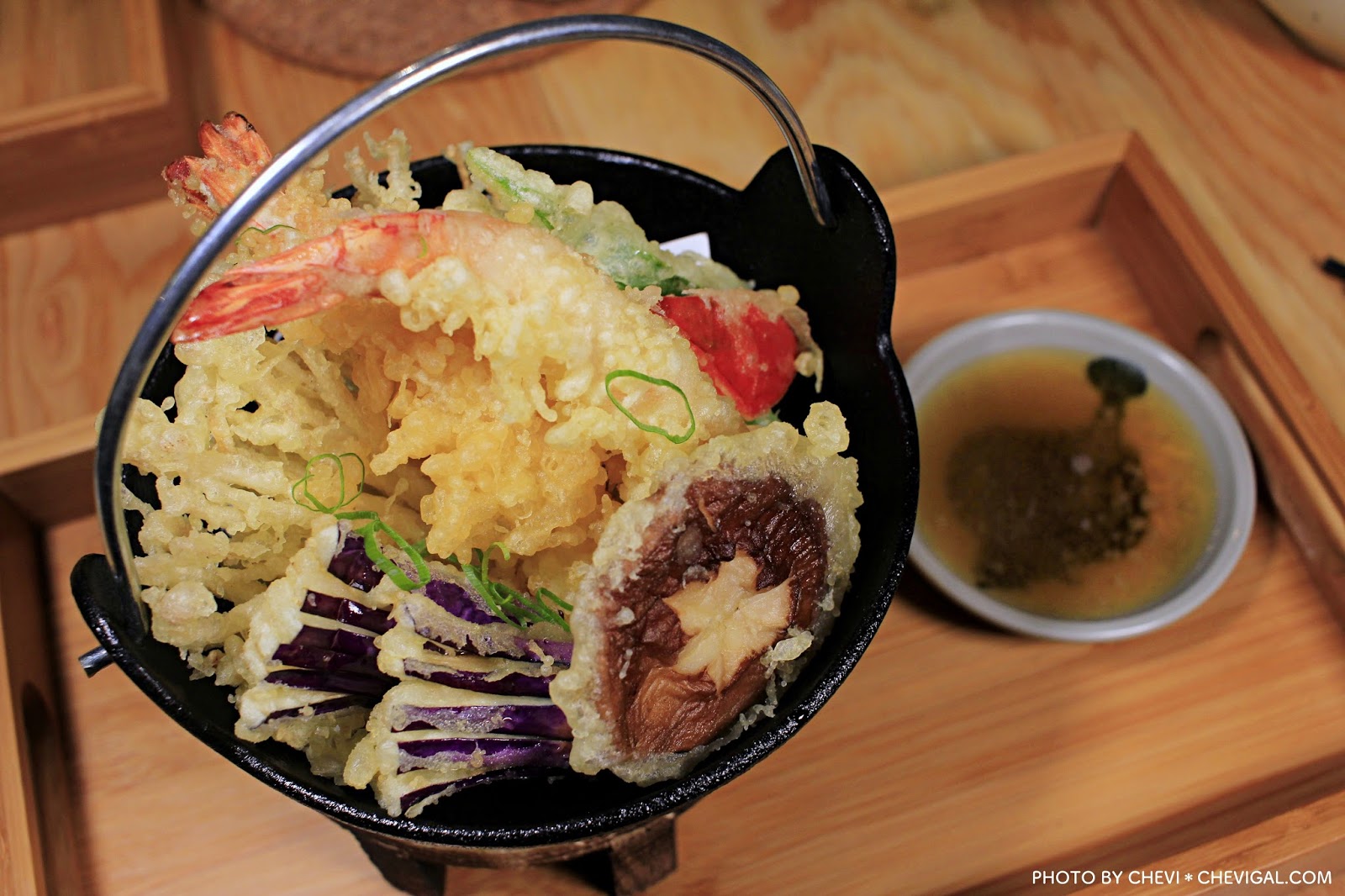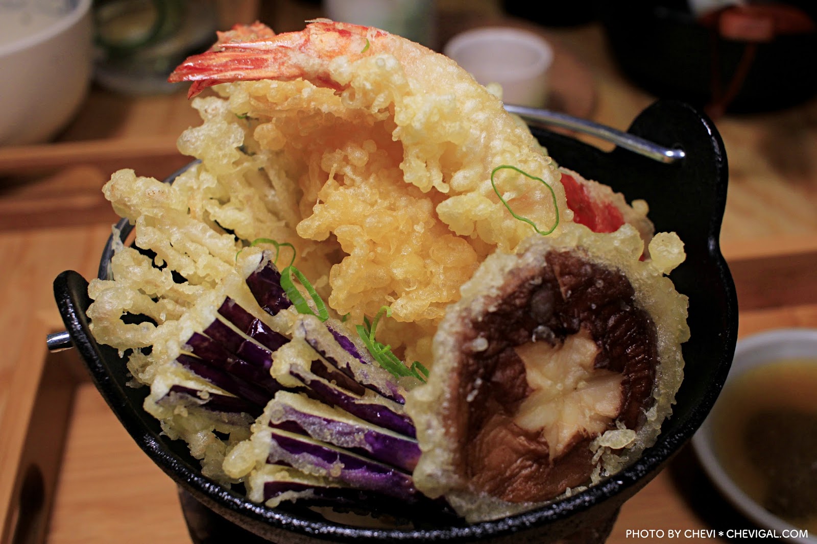 這份天婦羅的份量也是非常澎派!除了有三隻肥美的炸蝦,還有香菇、南瓜、地瓜、青椒、茄子等蔬菜,吃起來都很鮮甜。
