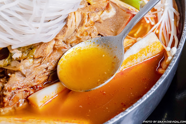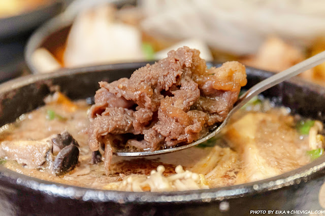 湯底口味的設定上也是參考首爾目前較為普遍的風味,嚐起來甜甜鹹鹹,雖然剛入口覺得偏甜,但因為有加入紅蘿蔔、洋蔥與蔥段提味,甜味算是還蠻自然的,也不會像一般的壽喜燒來得那麼鹹膩。